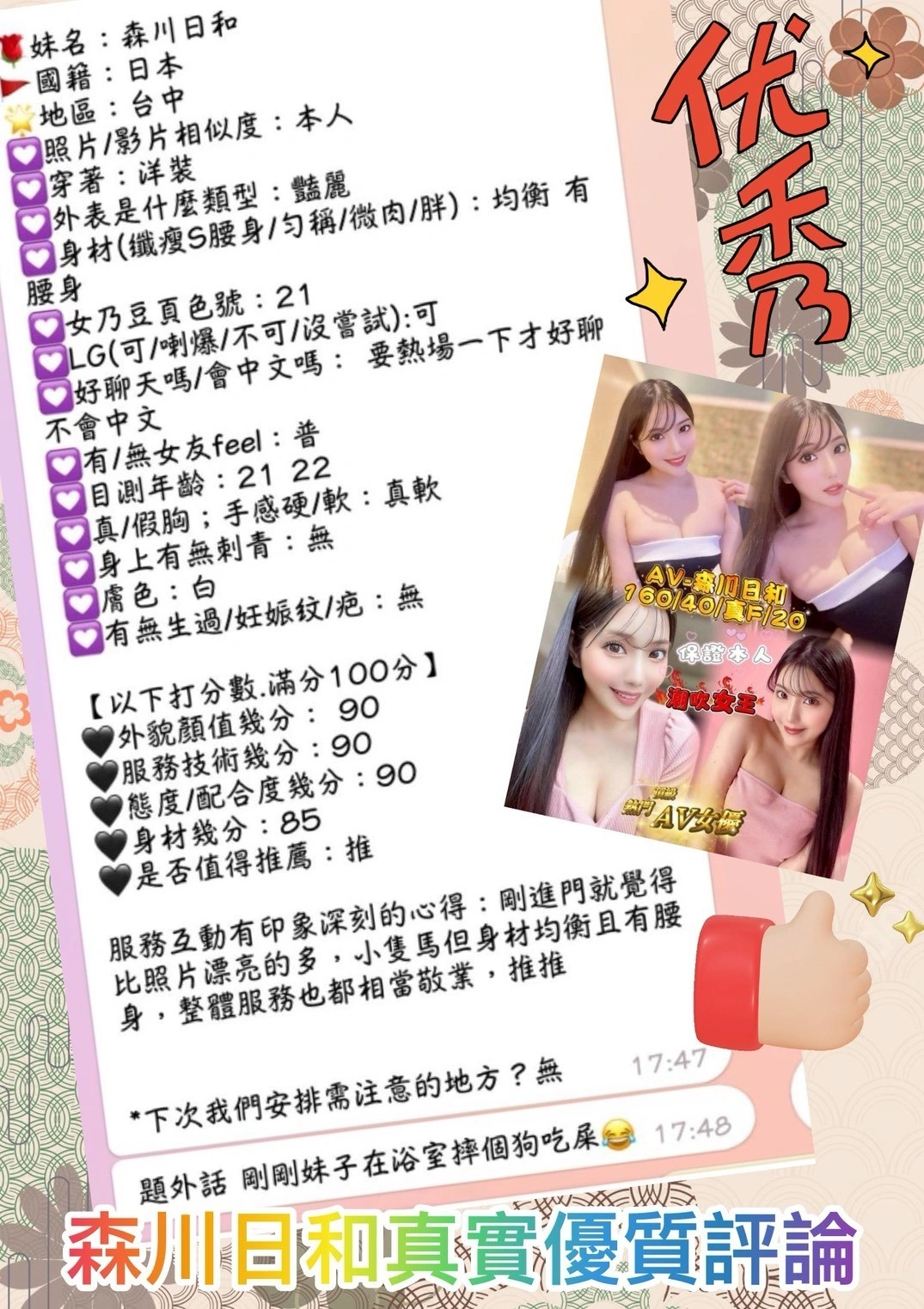 加價項目 : 2S+4000,NS+5000,自慰秀+2000,毒龍+2000,口爆+3000,顏射+2000,聖水+2000,情趣用品+2000,無套內射+7000,攝影+10000(露臉),車資依地區計價