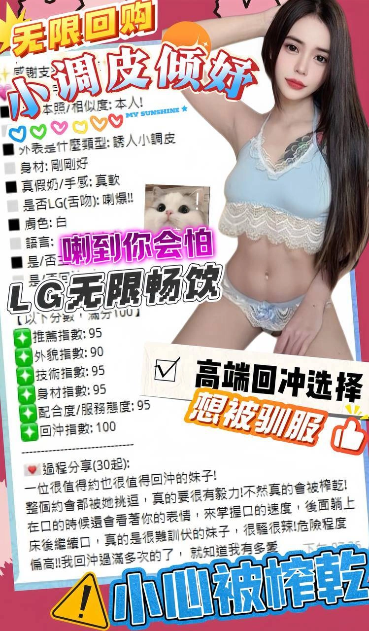 答:不可以哦,因為妹妹都是兼職的,在我們這般約她我們能保證在第一時間保護雙方的安全。如果加聯絡方式自己約,出現任何經濟糾紛與我們無關(有真實案例),請重視!!!