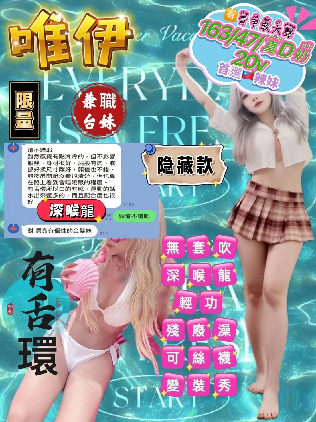 可配合 :按摩,陪洗,共浴,殘廢澡,帝王浴,LG(舌吻)依氣氛衛生而定,可親嘴,無套吹,足交,輕功,漫遊,屁推,深喉嚨,變裝(自備免付),絲襪(自備免付)