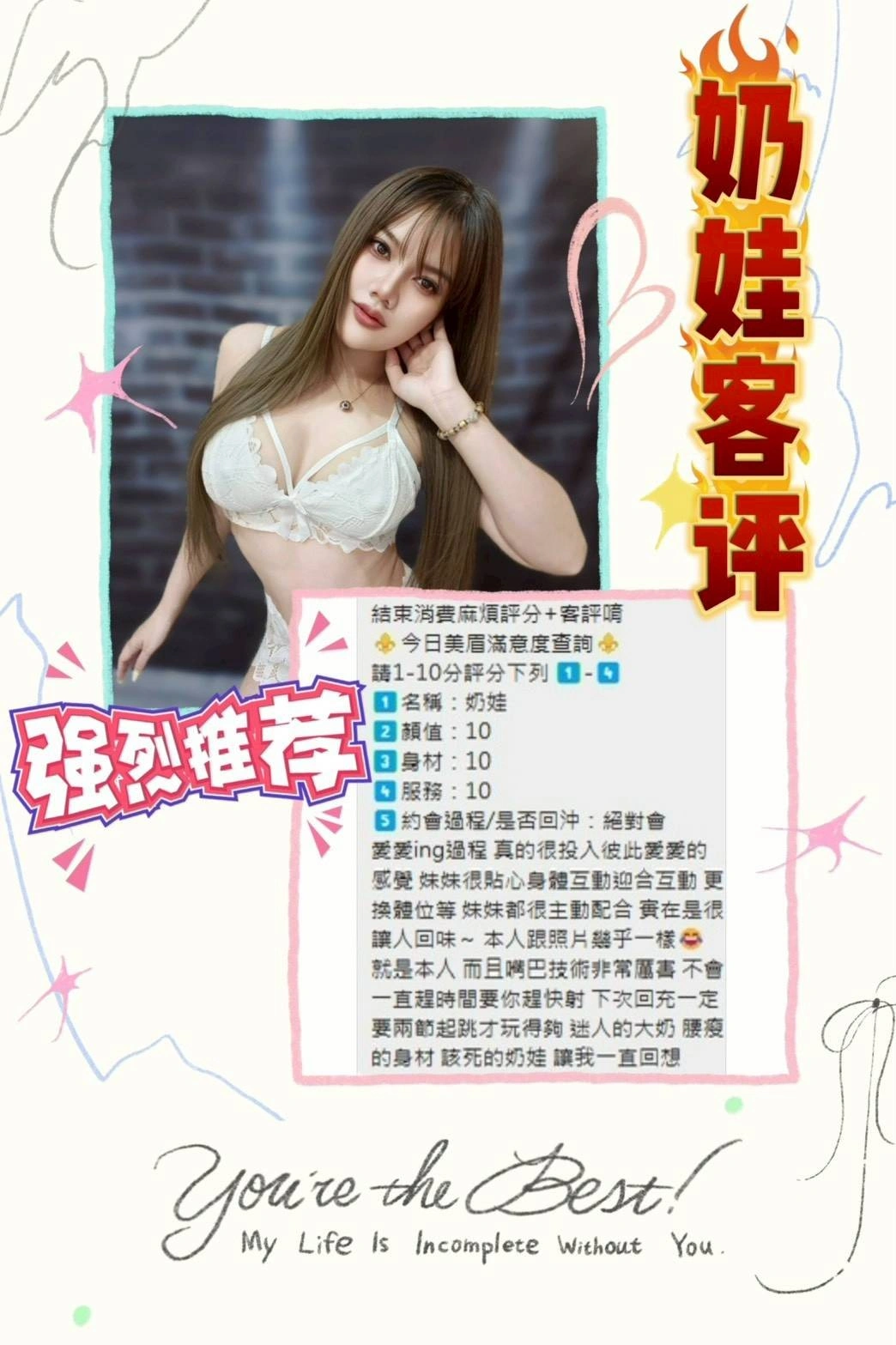 可配合 :毒龍,按摩,69,共浴,可親嘴,無套吹,口爆,品鮑,顏射,艷舞秀,變裝(自備免付),絲襪(自備免付),玩具(按摩棒),玩具(跳蛋),情趣用品(客自備),無套做,無套內射,後門,自慰秀,攝影,快餐,2S