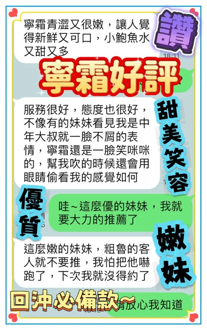 4️⃣見面後確認妹妹滿意後 將現金交給妹妹,即可開始享受服務。