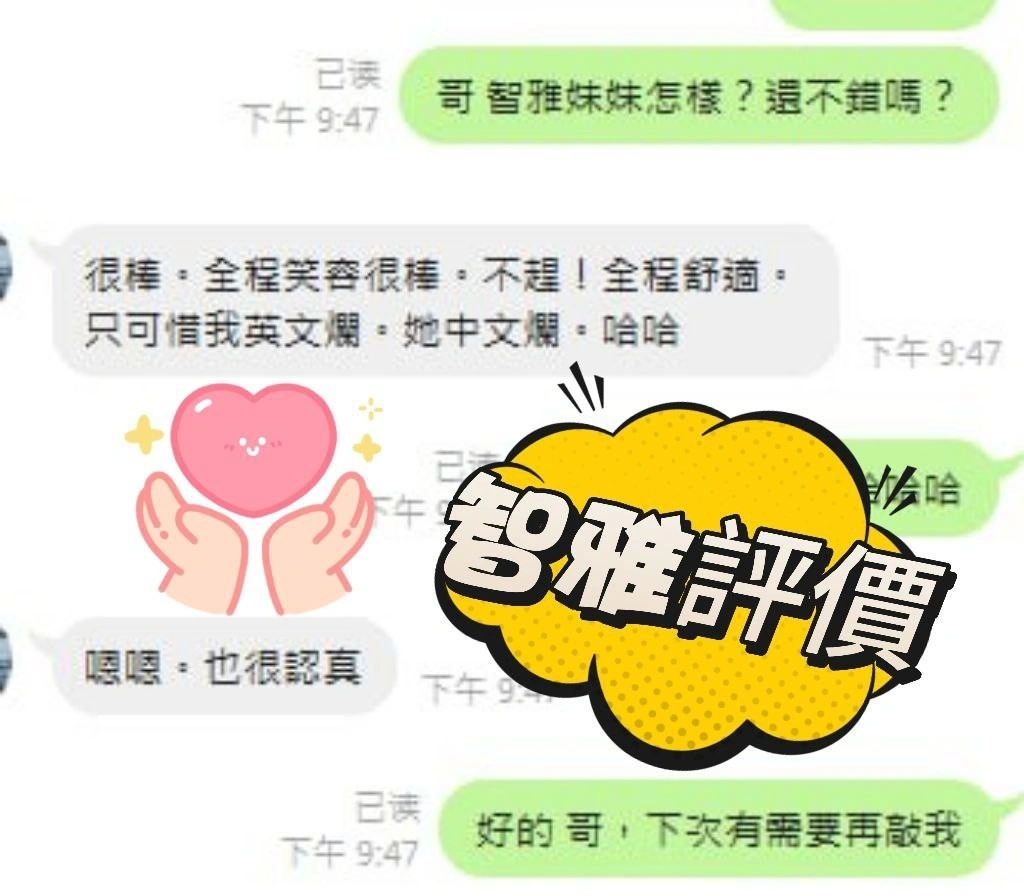 4️⃣見面後確認妹妹滿意後 將現金交給妹妹,即可開始享受服務。