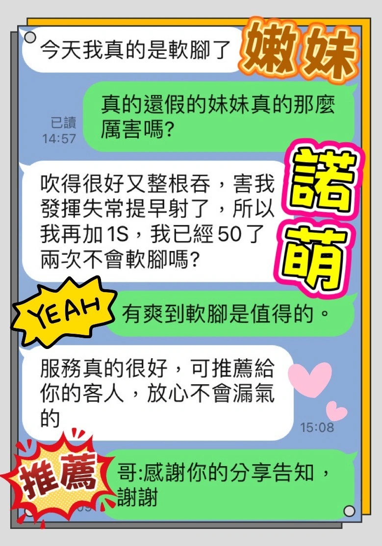 4️⃣見面後確認妹妹滿意後 將現金交給妹妹,即可開始享受服務。