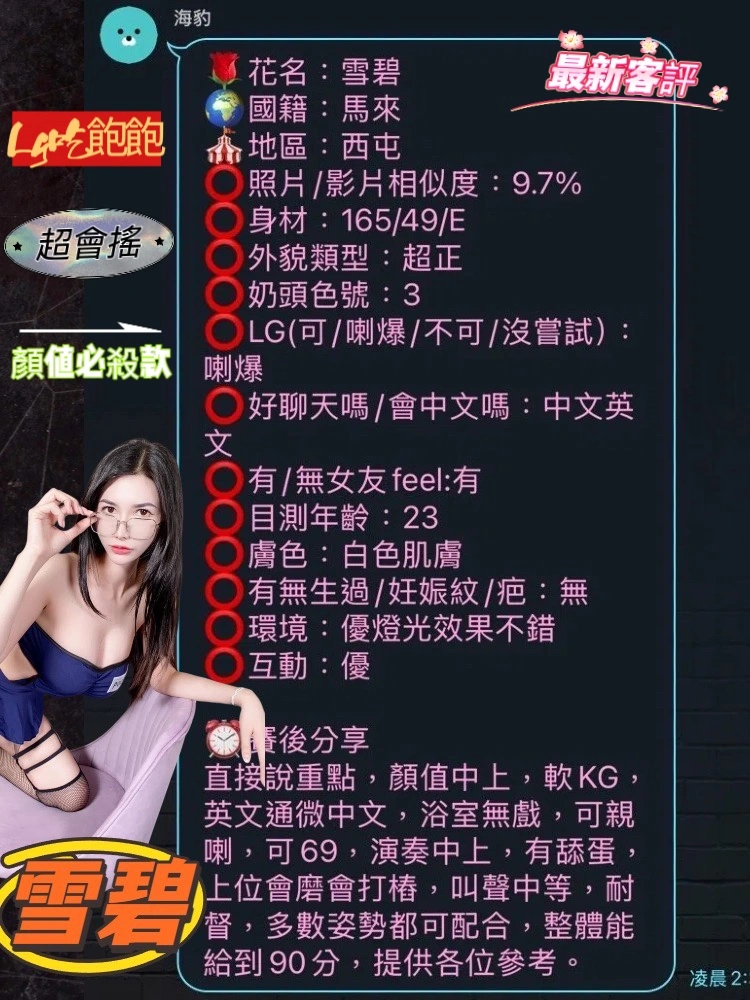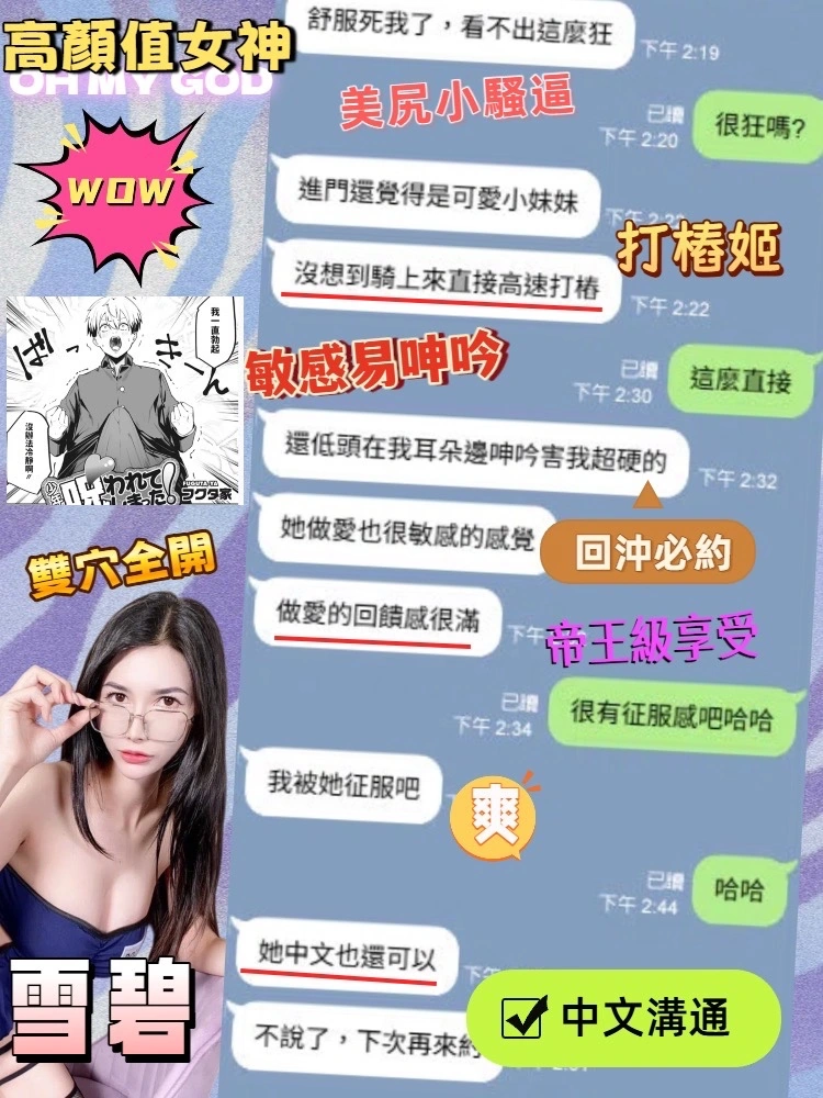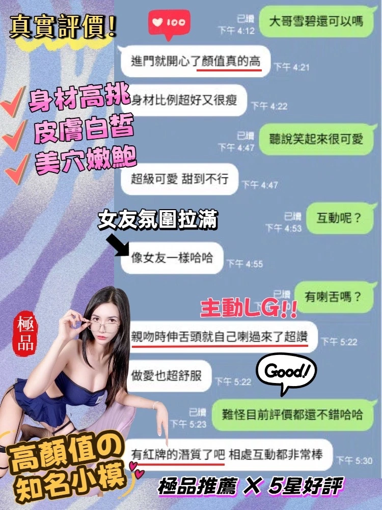 可配合 :奶砲,按摩,69,共浴,LG(舌吻)依氣氛衛生而定,可親嘴,無套吹,口爆,潮吹(依貴賓技術而定),品鮑,舔蛋,奶推,屁推,顏射,浴中蕭,絲襪,無套做,無套內射,後門,中文溝通,快餐,2S,NS,包夜