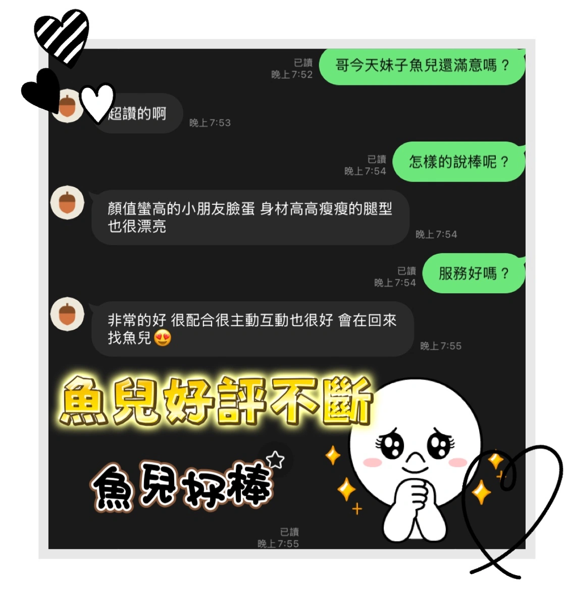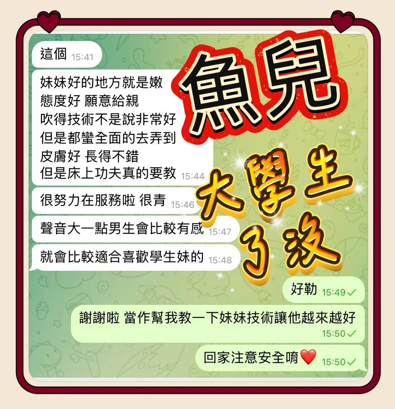4️⃣見面後確認妹妹滿意後 將現金交給妹妹,即可開始享受服務。