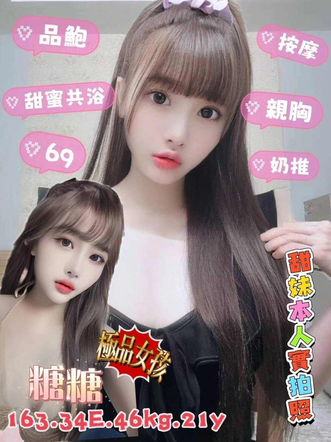 可配合 :奶砲,按摩,69,可親嘴,無套吹,足交,品鮑,舔蛋,顏射,絲襪(自備免付),快餐,2S,包夜