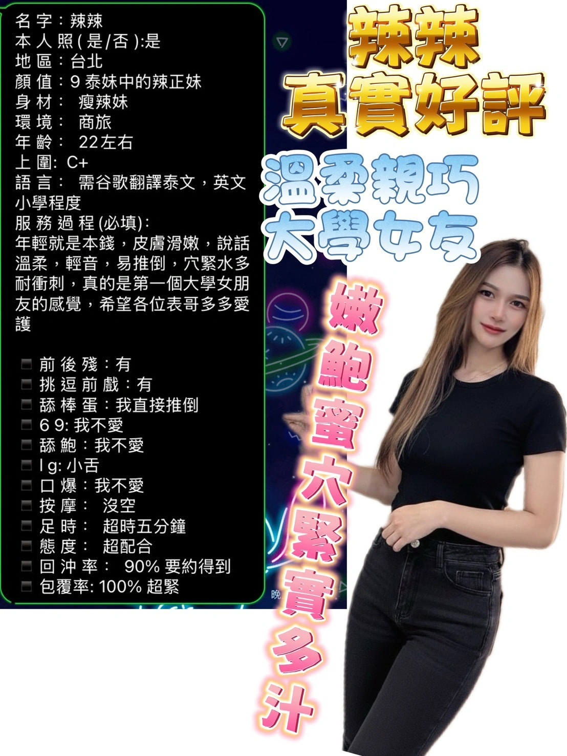 4️⃣見面後確認妹妹滿意後 將現金交給妹妹,即可開始享受服務。