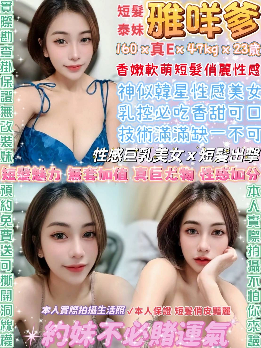 答:不可以哦,因為妹妹都是兼職的,在我們這般約她我們能保證在第一時間保護雙方的安全。如果加聯絡方式自己約,出現任何經濟糾紛與我們無關(有真實案例),請重視!!!