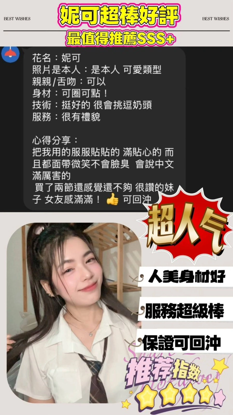 4️⃣見面後確認妹妹滿意後 將現金交給妹妹,即可開始享受服務。