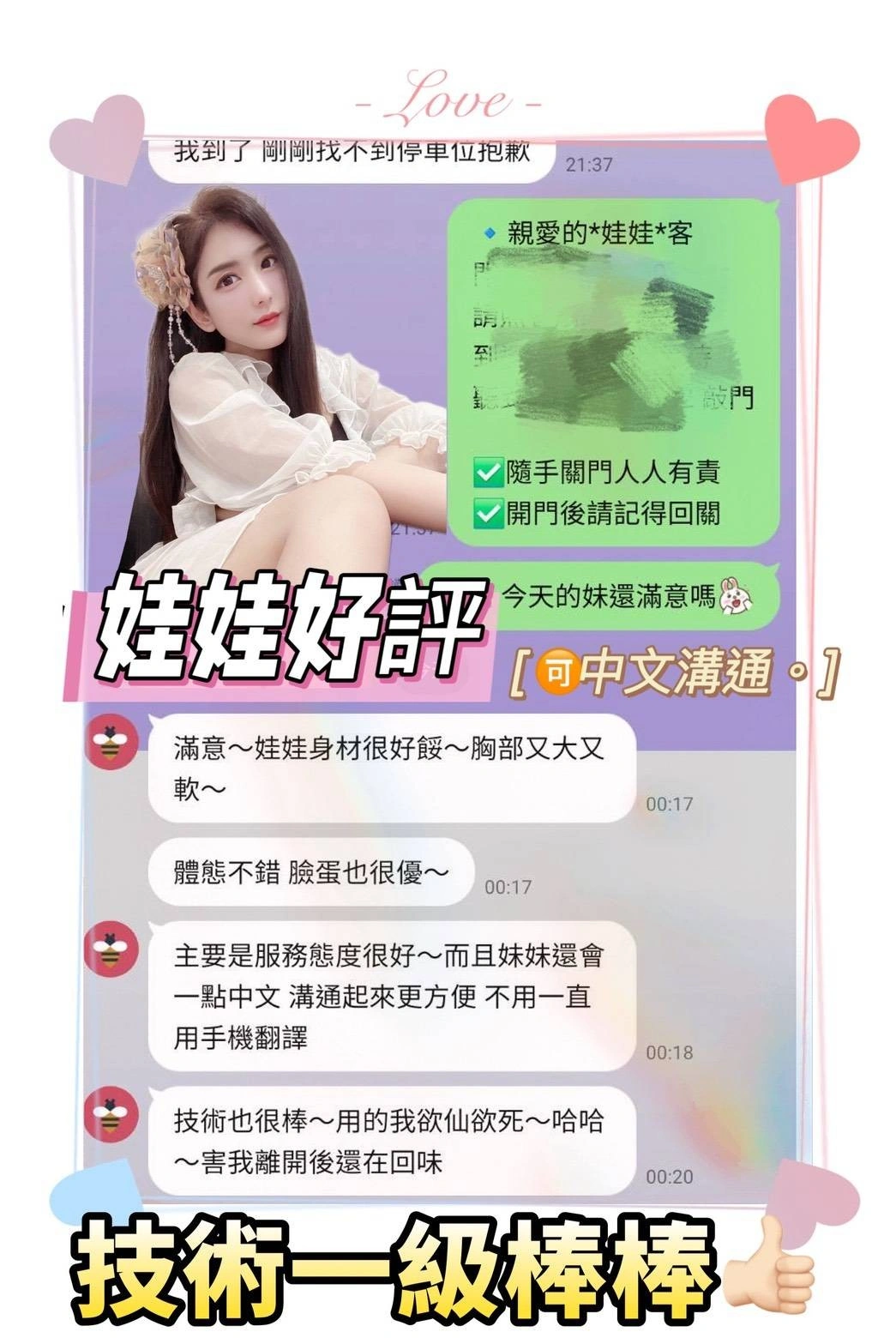 4️⃣見面後確認妹妹滿意後 將現金交給妹妹,即可開始享受服務。