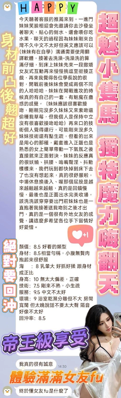 4️⃣見面後確認妹妹滿意後 將現金交給妹妹,即可開始享受服務。