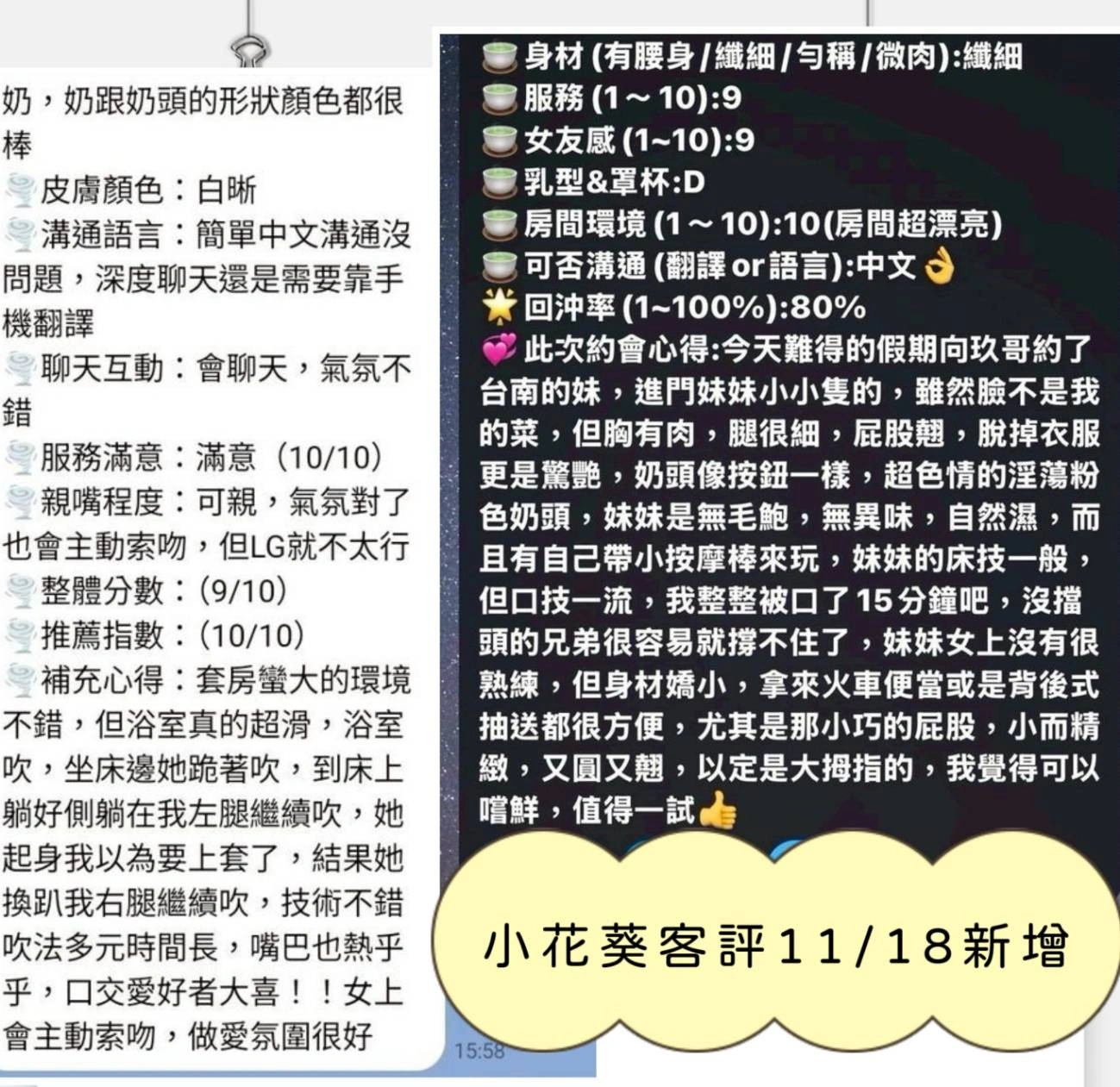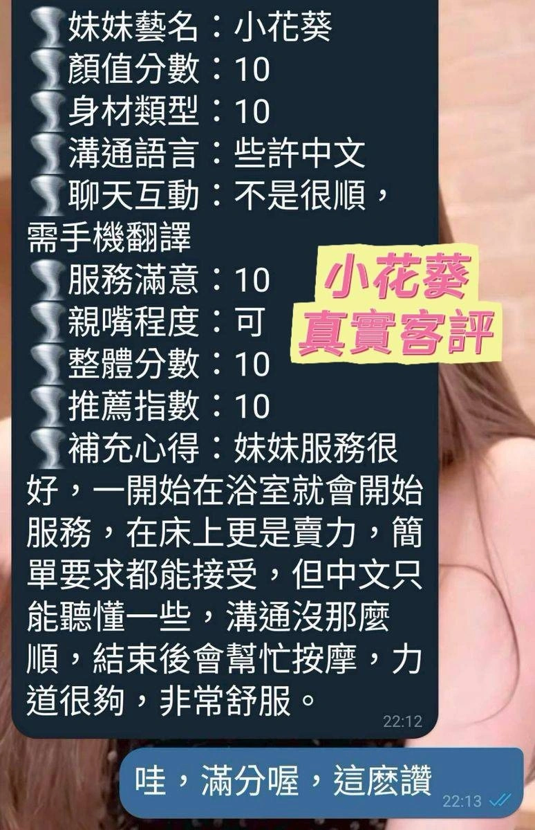 可配合 :奶砲,按摩,69,共浴,LG(舌吻)依氣氛衛生而定,可親嘴,無套吹,口爆,品鮑,舔蛋,奶推,屁推,冰火,顏射,絲襪,玩具(按摩棒),玩具(跳蛋),攝影,快餐,2S