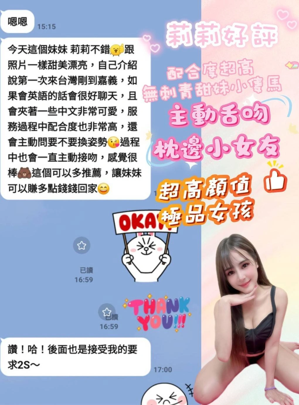 4️⃣見面後確認妹妹滿意後 將現金交給妹妹,即可開始享受服務。