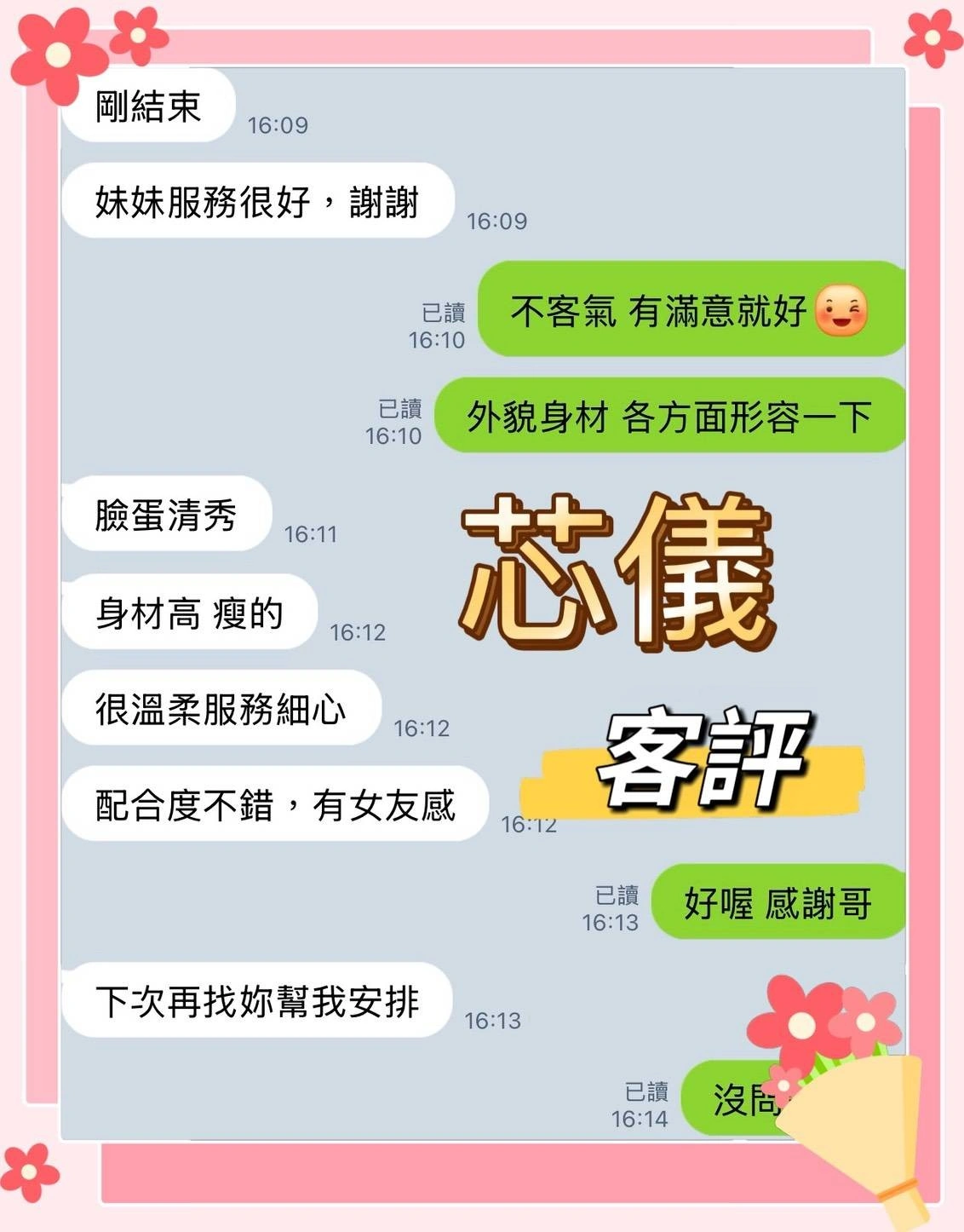 4️⃣見面後確認妹妹滿意後 將現金交給妹妹,即可開始享受服務。
