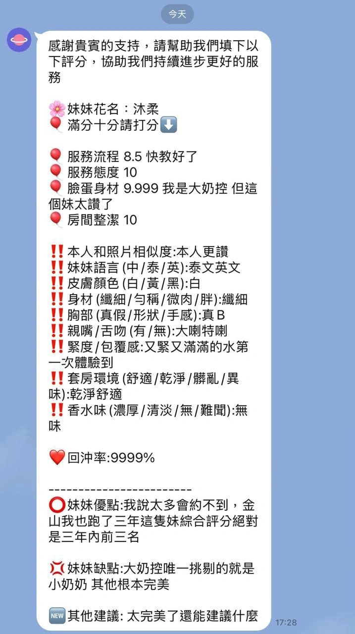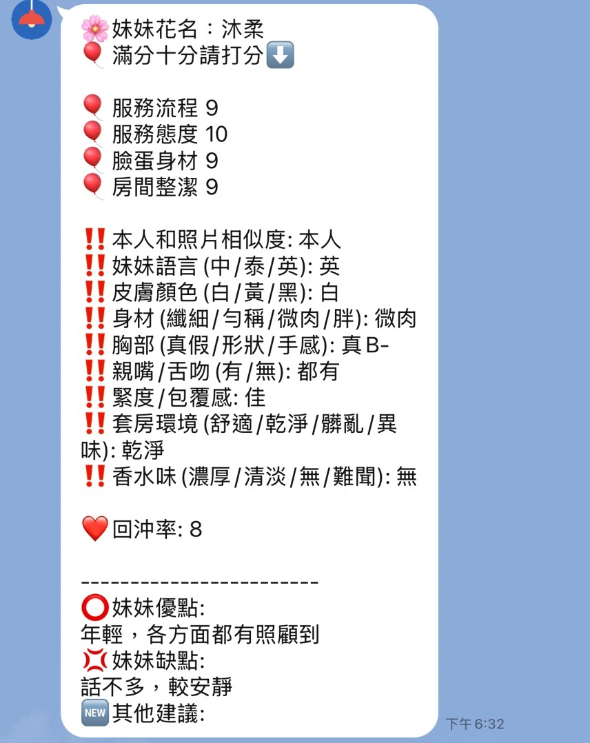 可配合 :按摩,69,共浴,LG(舌吻)依氣氛衛生而定,可親嘴,無套吹,口爆,品鮑,舔蛋,奶推,屁推,冰火,顏射,浴中蕭,變裝(自備免付),絲襪(自備免付),自慰秀,攝影,快餐,2S,NS