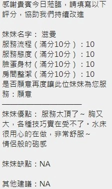 可配合 :奶砲,按摩,69,共浴,LG(舌吻)依氣氛衛生而定,可親嘴,無套吹,口爆,品鮑,舔蛋,奶推,屁推,水床浴,變裝(自備免付),絲襪(自備免付),無套做,無套內射,中文溝通,快餐,2S