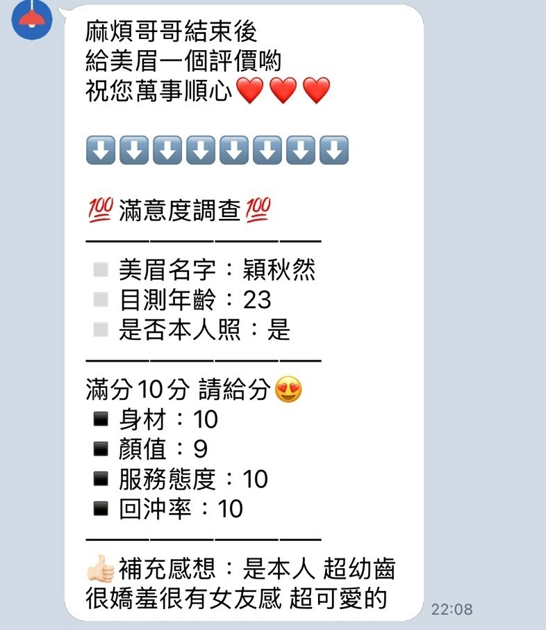 4️⃣見面後確認妹妹滿意後 將現金交給妹妹,即可開始享受服務。