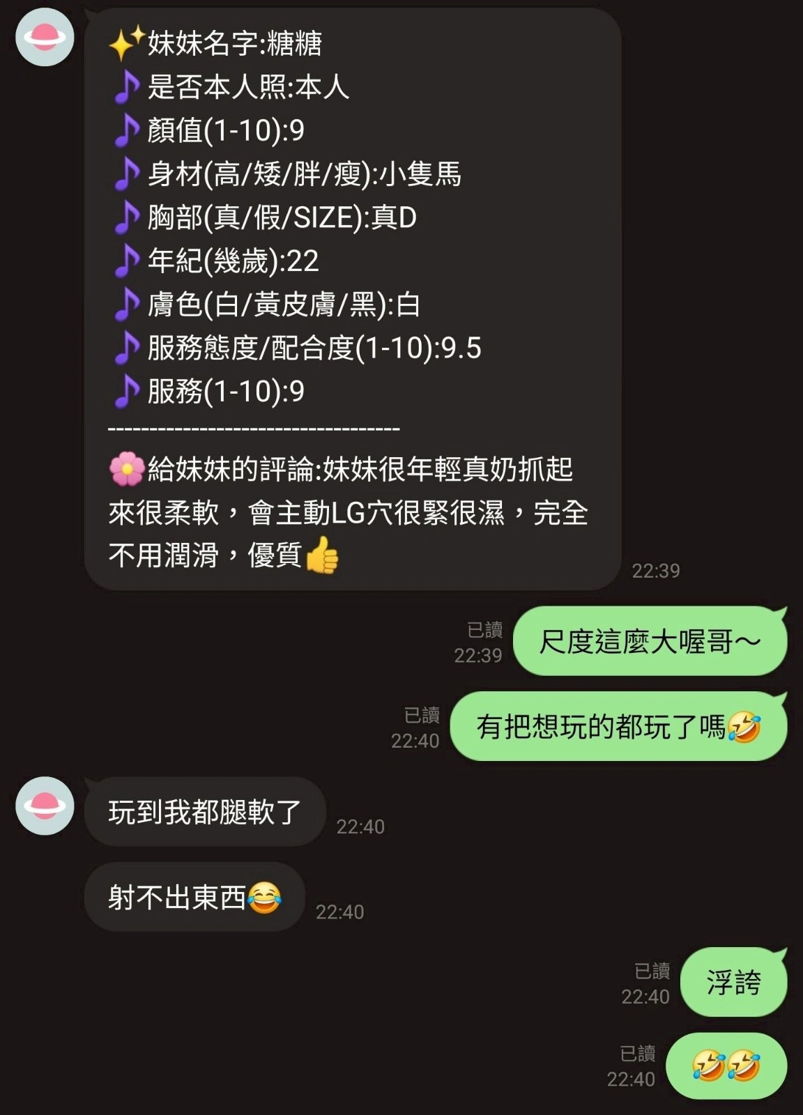 4️⃣見面後確認妹妹滿意後 將現金交給妹妹,即可開始享受服務。