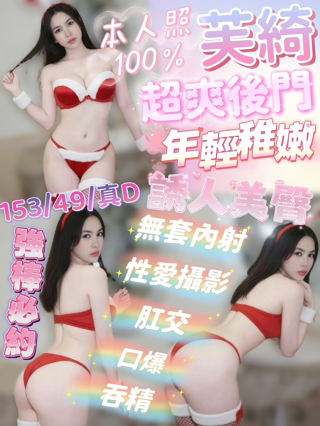加價項目 : 2S+500,口爆+500,口爆吞精+1000,後門+1000,無套內射+1000,攝影+1000(不露臉)