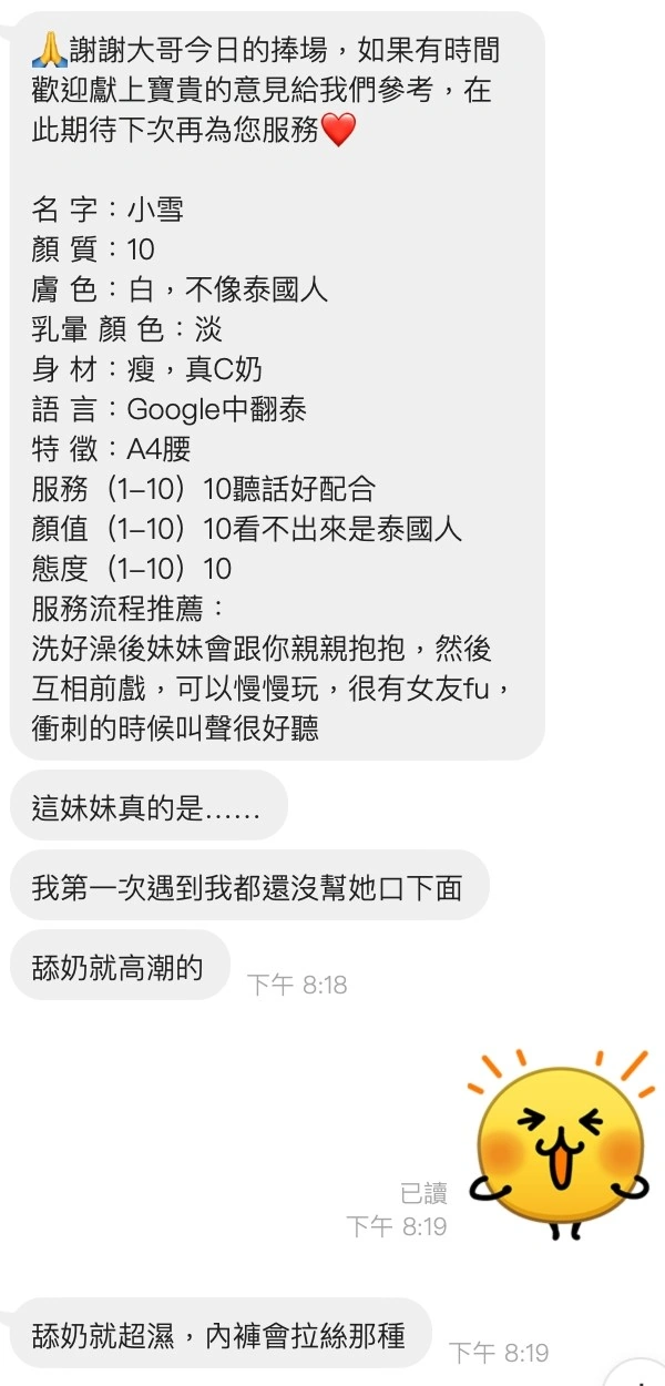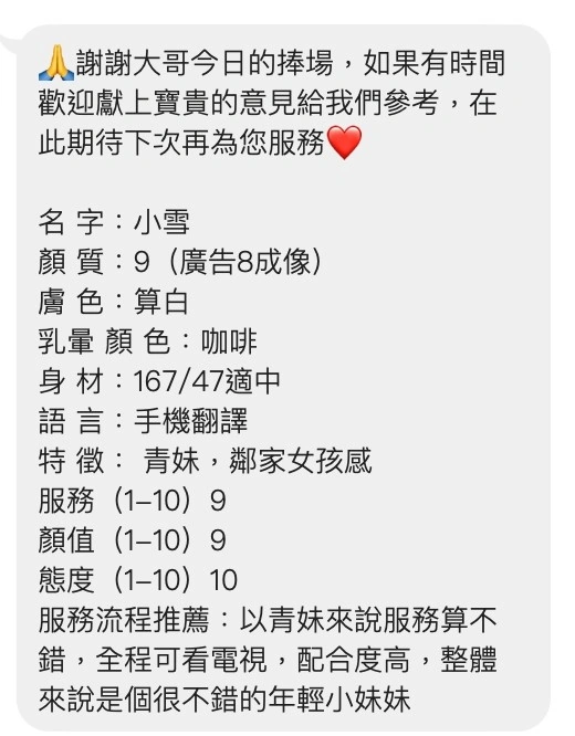 4️⃣見面後確認妹妹滿意後 將現金交給妹妹,即可開始享受服務。