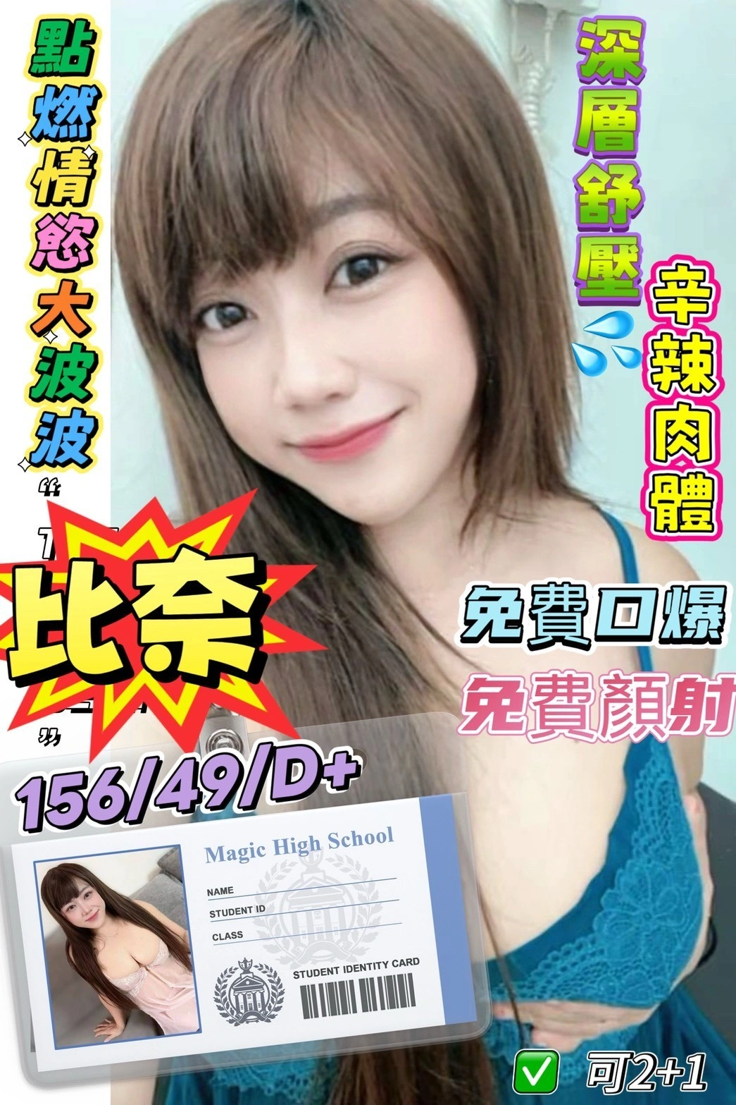 可配合 :奶砲,按摩,69,共浴,LG(舌吻)依氣氛衛生而定,可親嘴,無套吹,口爆,品鮑,舔蛋,顏射,無套做,無套內射,快餐,2S,NS