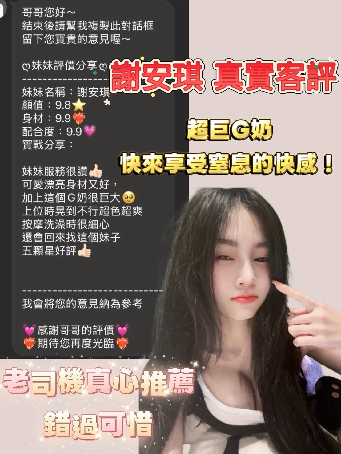 4️⃣見面後確認妹妹滿意後 將現金交給妹妹,即可開始享受服務。