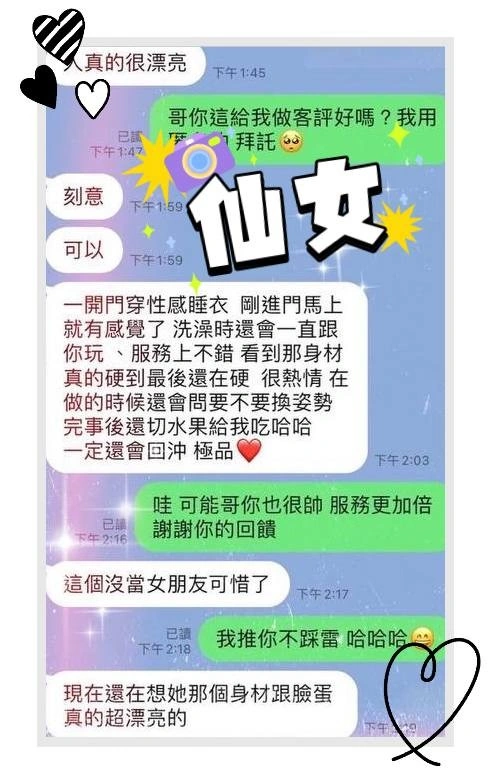 4️⃣見面後確認妹妹滿意後 將現金交給妹妹,即可開始享受服務。