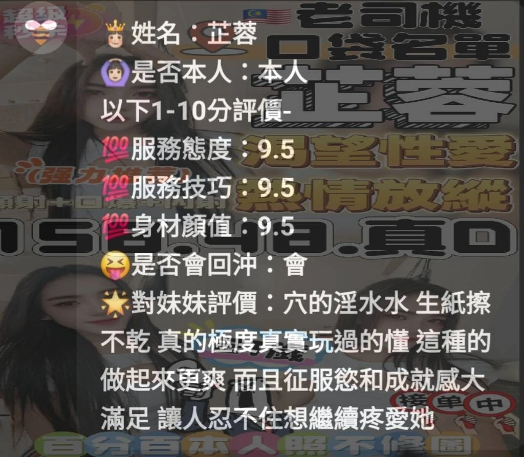 可配合 :按摩,69,共浴,LG(舌吻)依氣氛衛生而定,可親嘴,無套吹,口爆,品鮑,舔蛋,顏射,變裝(自備免付),絲襪(自備免付),無套做,無套內射,快餐,2S
