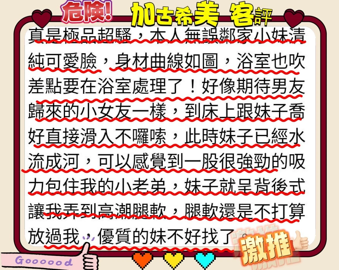4️⃣見面後確認妹妹滿意後 將現金交給妹妹,即可開始享受服務。