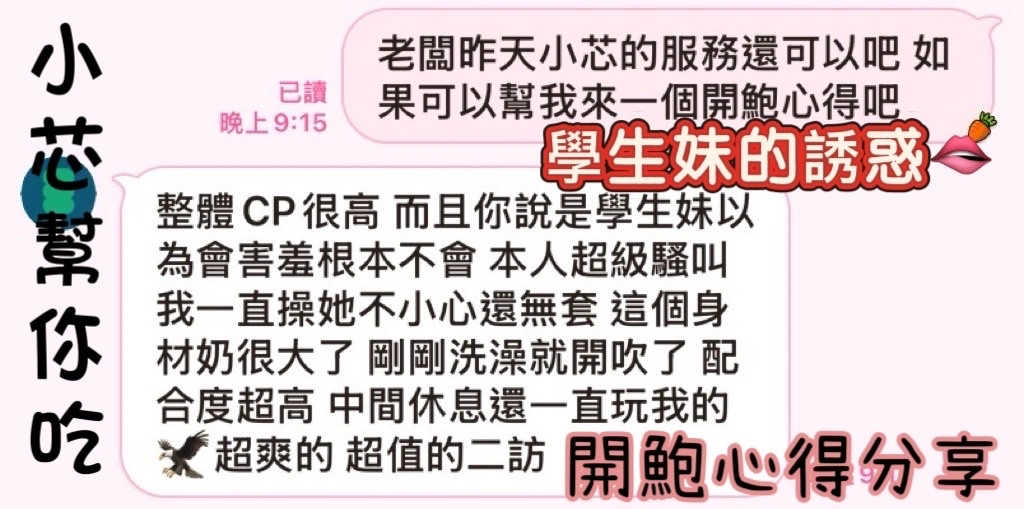 4️⃣見面後確認妹妹滿意後 將現金交給妹妹,即可開始享受服務。
