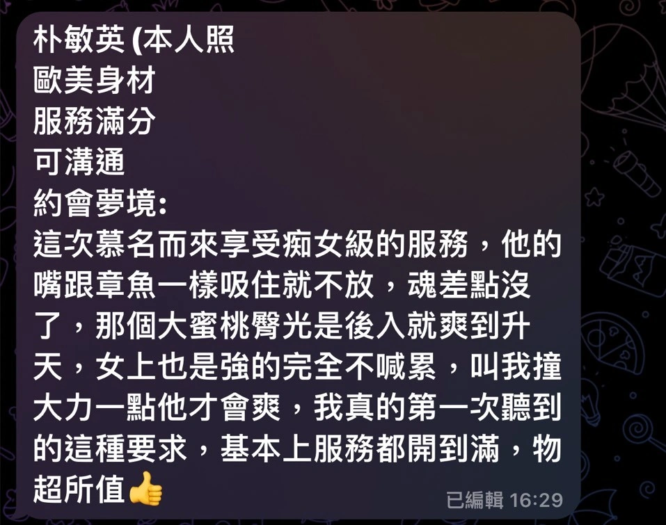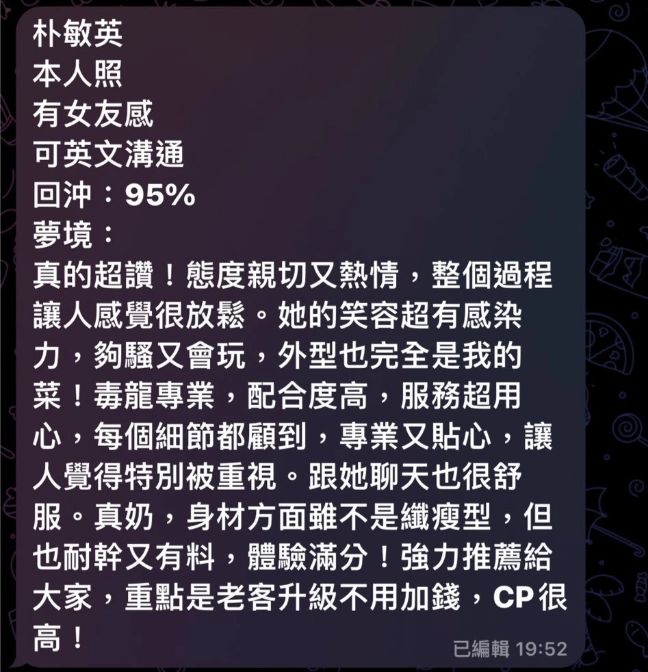 4️⃣見面後確認妹妹滿意後 將現金交給妹妹,即可開始享受服務。